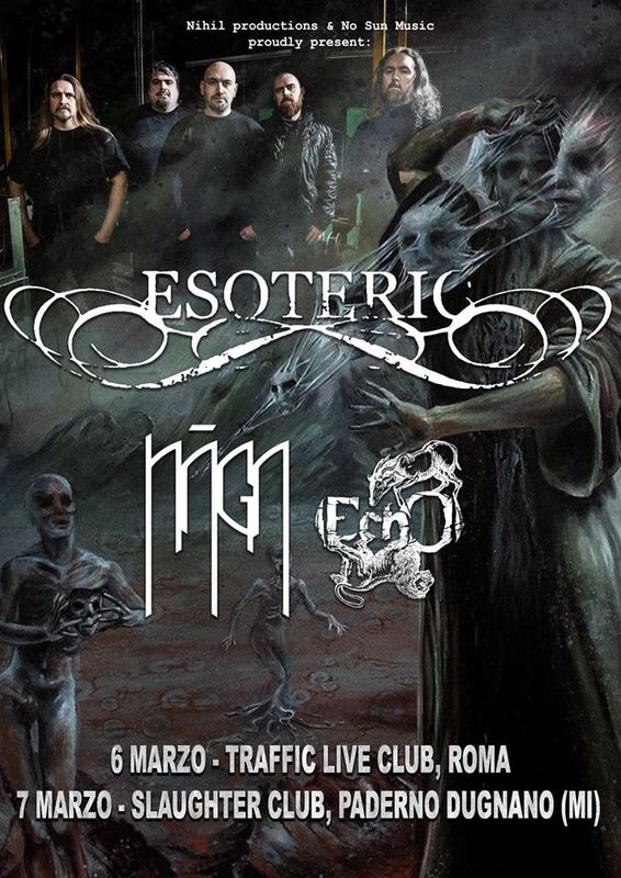 No Sun Music, in collaborazione con Nihil Prod., è riuscita ad organizzare il ritorno in Italia della funeral doom band britannica ESOTERIC. La band ha da poco inciso il nuovo album 'A Phyrric Existence' per l'etichetta Season Of Mist, e proporrà i loro brani in due serate italiane in compagnia di altre due band nostrane che fanno del doom la loro ragion d'essere: si tratta dei napoletani NAGA, freschi di nuovo album dal titolo 'Void Cult Rising (uscito per Spikerot Records), e i bresciani (EchO), anche loro reduci da una nuova fatica discografica, 'Below The Cover Of Clouds' (uscito per BadMoonMan Music). Di seguito le location che ospiteranno gli ESOTERIC.