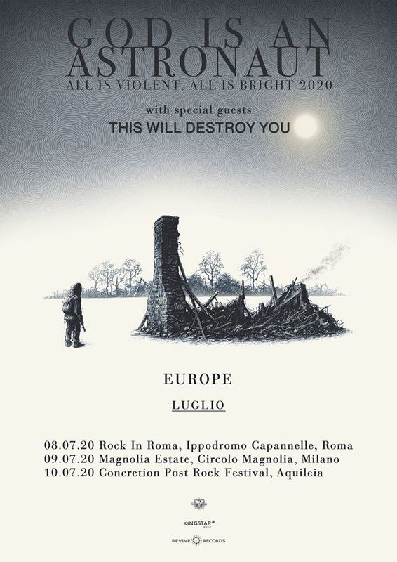Dopo il grande successo del loro tour estivo, Hellfire Booking ed ERocks Production sono felici di annunciare il ritorno dei GOD IS AN ASTRONAUT, affiancati dai THIS WILL DESTROY YOU! Post-rock ricercato, spiazzante ed enfatico, i GOD IS AN ASTRONAUT scuotono i palchi di tutto il mondo con sonorità atmosferiche e trascinanti, meravigliosi spettacoli di luce e vocals evanescenti. Ben oltre qualsiasi limite mai concepito per la musica, i THIS WILL DESTROY YOU mozzano il fiato con cambi dinamici ed atmosfere da vertigine, in un incontro mozzafiato fra shoegaze, ambient e doom. I GOD IS AN ASTRONAUT, accompagnati dai THIS WILL DESTROY YOU, saranno con noi per tre date imperdibili quest’estate. Non vediamo l’ora!