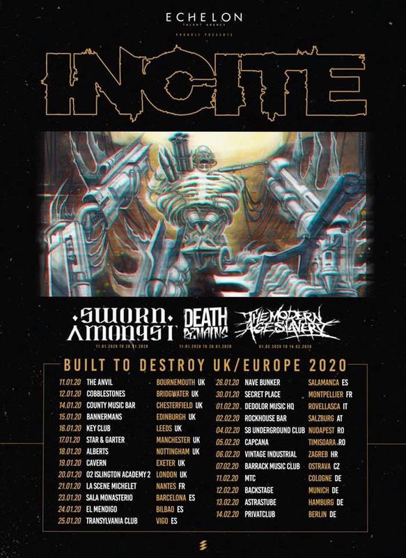 L'heavy metal band americana INCITE, in cui milita Richie Cavalera, figlio della storica voce dei SEPULTURA, Max Cavalera, intraprenderà a breve un tour europeo che, dopo essere già partito dal Regno Unito, toccherà diverse città in giro per il Vecchio Continente supportando l'ultimo album 'Built To Destroy', uscito agli inizi del 2019 per Minus HEAD Records. La band di Richie Cavalera farà tappa anche in Italia, e precisamente al Dedolor Music Headquarter di Rovellasca (CO) il prossimo 1 febbraio in compagnia degli deathsters italiani THE MODERN AGE SLAVERY. L'ingresso della data italiana è di 10€ (evento Facebook QUI) e l'evento sarà organizzato in collaborazione con Bagana Music Agency.