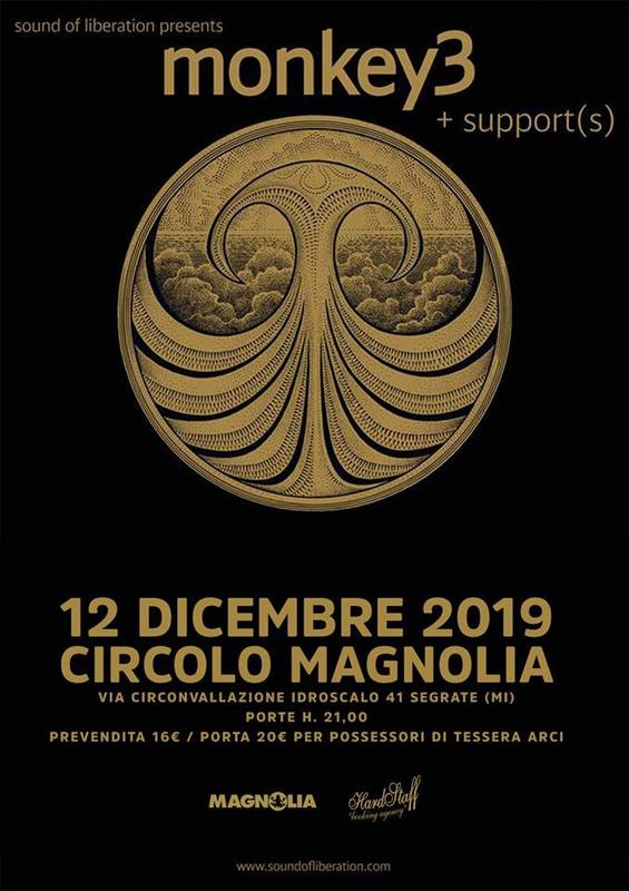 In collaborazione con Hardstaff Booking Agency e Sound of Liberation, la rock band svizzera MONKEY3 torna sui palchi italiani a distanza di due anni per promuovere dal vivo il loro ultimo album 'Sphere', uscito lo scorso aprile per Napalm Records. La data da segnare è quella del 12 dicembre al Circolo Magnolia di Segrate (MI). Di seguito dettagli e flyer dell'evento.