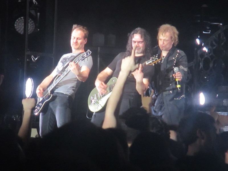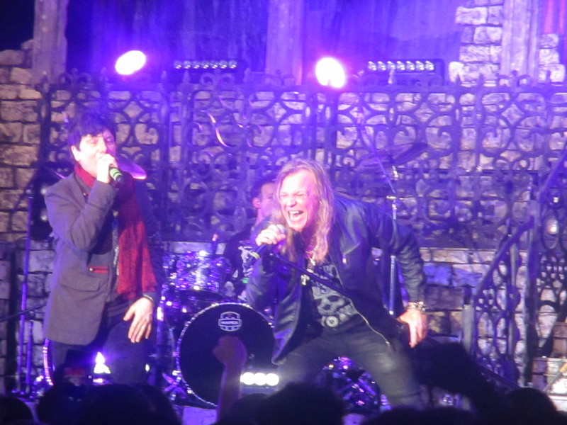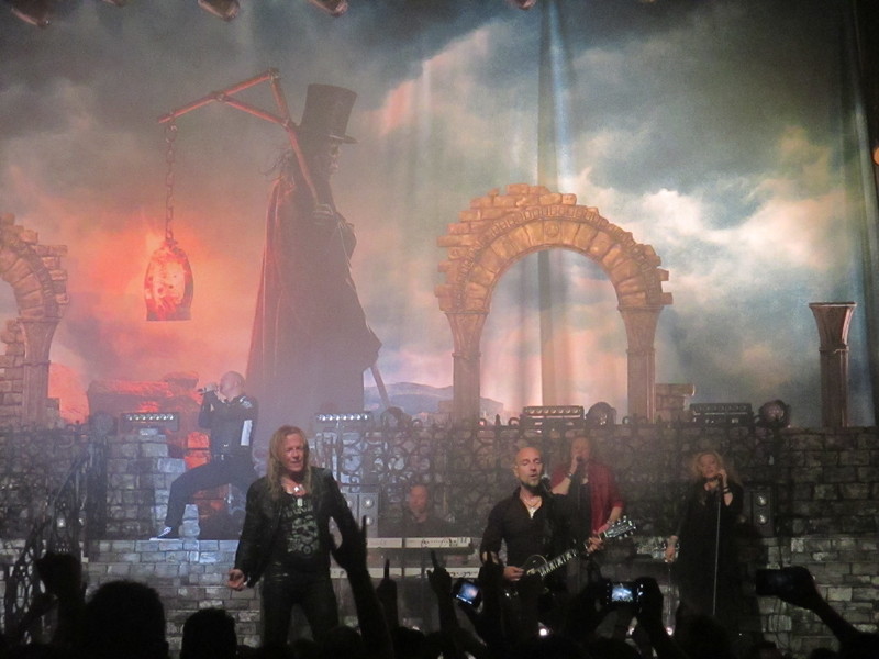 Tra un brano e l’altro si assiste ogni tanto ai consueti e simpatici siparietti che Sammet intrattiene col pubblico e con i suoi colleghi sul palco, e che riescono sempre a catturare l’attenzione, e non disdegnando qualche battuta in italiano con i suoi compagni, scatenando a volte l’ilarità del pubblico. Dopo “Stargazers”, è la volta di “Shelter From The Rain” con Kiske e Catley, ma uno dei pezzi migliori della serata rimarrà senza dubbio la melodia senza tempo di “The Story Ain’t Over”, con un Bob Catley magistrale, che nonostante si muova ormai come può, sfodera una performance vocale da urlo. Un altro pezzone arriverà di seguito: “Let The Storm Descend Upon You”, come su disco, suscita sempre emozioni e il suo ritornello è cantato a squarciagola da tutta la venue. Dopo un attimo di pausa, si ritorna al passato, e all’attacco di “Promised Land” il grande telone di ‘Ghostlights’ sparisce ed appare di colpo il simbolo di ‘The Scarecrow’, amplificando ulteriormente la prestazione di Jorn Lande e la resa del brano. Altro brano acclamato dal pubblico è il vero simbolo di tutto ciò, “Avantasia”, cantato praticamente a memoria dal pubblico e accompagnato dalla potenza delle voci presenti (Sammet, Kiske, Langhans e Somerville). In quel momento Kiske, alla lunga e già durante il brano precedente, tende a perdere tonalità e freschezza, denotando segni di stanchezza. Eric Martin rientra in campo ed improvvisa con Ronnie Atkins e con Sammet dei vocalizzi in stile Freddie Mercury assieme al pubblico, che risponde prontamente e che introduce “Twisted Mind”. Prima della pausa, la band attacca “Dying For An Angel”, altro classico della band cantato in origine da Klaus Meine, e mai completamente fatto suo dal vivo da Eric Martin, che come nel tour precedente dimostra meno smalto rispetto a Sammet.