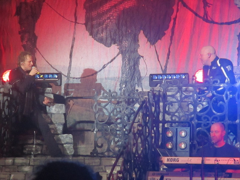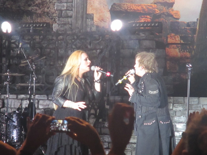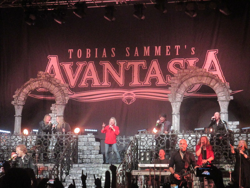 Davanti ad una poderosa scenografia, con un palco a più livelli e dove campeggiano sullo sfondo le immagini che simboleggiano ‘Ghostlights’, lo show inizia, dopo l’intro di “Così parlò Zahratustra”, con il brano che apre l’ultimo album, “Mystery Of A Blood Red Rose”, con Sammet che si impadronisce del palco e manda in visibilio il pubblico. Accompagnato bene da band (dove si segnalano alle chitarre il fido Oliver Hartmann e il super producer Sascha Paeth) e coristi (gli affermati Herbie Langhans e la sempre più bella Amanda Somerville), il folletto di Fulda si presenta subito particolarmente caldo sulle note di questo bellissimo brano. Dal brano successivo in avanti ci si accinge all’alternarsi delle voci che, durante gli anni dell’epopea Avantasia, hanno contribuito a fare grande questa creatura. “Ghostlights” vede scendere in campo Michael Kiske, un pochino in ritardo sul timing del brano, ma compensando il tutto con la sua notoria e splendida voce. È la volta poi della voce dei Pretty Maids, Ronnie Atkins, il quale sembra ogni volta compiere sforzi sovrumani mentre canta, quando si osservano solamente i muscoli del volto e del collo contrirsi, ma capace di dare col suo proverbiale timbro ruvidissimo delle dure sferzate rock di sicuro impatto. Sempre con Sammet a fare da supervisore e presente in quasi tutti i brani della lunga scaletta, si presenta la classe di un altro evergreen del rock classico mondiale, Bob Catley from Magnum, che con i suoi gesti ormai rituali cattura il pubblico, associando la sua presenza ad una voce che, col passare degli anni, non è mai calata di sensazioni e profondità. “A Restless Heart And Obsidian Skies” e “The Great Mystery” lo ergono ad assoluto protagonista. Ma sicuramente uno degli elementi più attesi è il ritorno sul palco con gli Avantasia del vichingo Jorn Lande, e Sammet gli concede l’onore di interpretare con la sua imponente presenza “The Scarecrow” e “Lucifer”. C’è spazio vocale anche per l’ottimo chitarrista Oliver Hartmann, il quale più degli altri ha interpretato le sue parti strumentali con qualità e perizia di assoluto livello. In “The Watchmakers Dream” dà sfoggio alle sue qualità vocali accompagnando Sammet, ma reggendo a fatica il confronto. Diversamente da Lande, non si aspettava invece la presenza sul palco della voce dei Mr. Big, Eric Martin , il quale si presenta assolutamente bene sulle note di “What’s Left On Me”. Sammet lo ha annunciato all’inizio dello show che si sarebbero proposti brani recenti e meno recenti, e tra questi ultimi rientra un classico, “The Wicked Symphony”, interpretato a più voci, che hanno giocato la loro parte, ma che onestamente non hanno esaltato il lato d’impatto che il brano aveva in serbo, e quindi non esplodendo particolarmente. Dopo “The Wicked Symphony”, c’è ancora spazio per Herbie Langhans in quello che sarà il secondo singolo estratto da ‘Ghostlights’: “Draconian Love” viene fatta seguendo a menadito i fraseggi presenti su disco, con Langhans dal timbro molto dark e le melodie facilmente accessibili, al limite del radiofonico. Non poteva però mancare la discesa in campo da protagonista di Amanda Somerville: “Farewell” cantata da lei e da Sammet produce un impatto emozionale davvero potente, enfatizzando ancor più le qualità vocali della biondona americana.