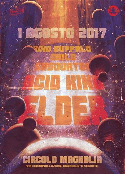 La questione cambia radicalmente come una scossa tellurica del nono grado Scala Richter quando salgono sul palco i bostoniani Elder, e subito mettono le cose in chiaro quando attaccano con “Sanctuary”, brano di apertura di quel gioiello megagalattico che è il nuovo album ‘Reflections Of A Floating World’, un album che ad ogni ascolto dimostra di sorprendere sempre più e di essere ogni volta più potente. Gli entusiasmi del pubblico sono molto alti, al limite della fantascienza, e questo perché la band risulta assolutamente perfetta sul palco, e le loro musiche sono estasianti per quanto potenti e varie. Loro sono i virtuosi dello stoner-rock, e lo dimostrano ancora di più con la successiva “The Falling Veil”. Ma l’apoteosi viene raggiunta quando ci affondano in maniera assoluta con “Compendium” e con la conclusiva “Gemini”, delle autentiche scintille esplosive che hanno prodotto vari headbanging spingendo la testa fin quasi a terra, facendoci esaltare in maniera vulcanica. Nessun calo, nessun punto debole, tutto straordinariamente lucido, pulito e convincente, per una tra le migliori stoner band in circolazione già da qualche anno a questa parte. Ci hanno trascinato e smosso da una parte e dall’altra con grande vigore, con grande gioia dei presenti, chiudendo una serata dagli alti contenuti musicali, in un’atmosfera di grande festa comune. Perché in fondo, se vuoi, del caldo puoi anche non pensarci.