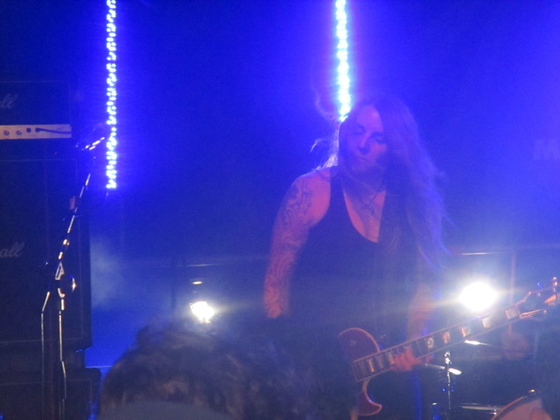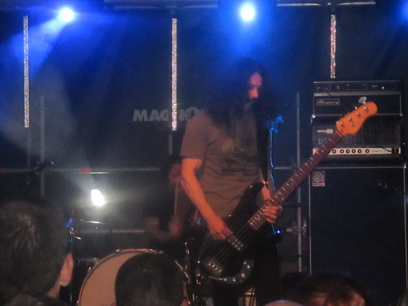 Si abbassano notevolmente le frequenze e si rallentano i ritmi quando sale sul palco un’istituzione dello stoner-doom internazionale, gli esperti Acid King capitanati dalla signora Lori S. Intanto nell’aria e in mezzo alla gente i livelli di alcol e sostanze, per così dire, tranquillizzanti si sono alzati in maniera graduale, e dalle facce presenti si nota tutto questo. E forse, sarebbe stato il modo giusto per poter apprezzare appieno la proposta della band di San Francisco, dediti a sonorità vicine ad un doom particolarmente statico e monolitico, al quale si aggiungono le linee di chitarra dall’aspetto molto grave proprio di Lori, che hanno permesso a tratti di poter compiere degli interessanti viaggi mentali. Ma solo a tratti, perché alla lunga la musica, almeno dal vivo, degli Acid King tendeva a non mantenere le ottime intenzioni che invece si constatano ascoltandoli su disco: le atmosfere inserite in un album quale, ad esempio, ‘Busse Woods’, non sembrano essere neanche lontanamente avvicinate dal set live proposto al Magnolia, e nemmeno gli inserti vocali di Lori, per quanto ottimi e suggestivi, sono riusciti ad alzare il livello. Un live che, comunque, è stato apprezzato da una buona fetta di pubblico, ma che come resa complessiva ha un po’ peccato, rendendosi apprezzabile, come accennato, solo all’interno di un’atmosfera contorniata da fumi ed essenze di un certo “tipo”.