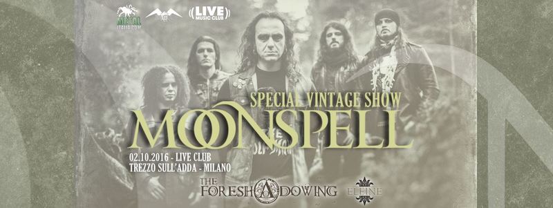 Nei primi anni '90, in Portogallo, muoveva i suoi primi passi una band dall'aspetto misterioso e persino lugubre, amante delle leggi della Natura, ma soprattutto profondamente legata ala propria terra d'origine. Muoveva i suoi primi passi dando alle stampe, qualche anno dopo, un album che sintetizza alla perfezione la propria fisionomia ed il proprio impeto combattivo. Con un album imprenscindibile per la storia non solo della componente dark dalle atmosfere gotiche del metal, ma dell'intero circuito metal generale, quale 'Wolfheart', seguito l'anno successivo da un alltro tassello fondamentale della loro carriera come 'Irreligious', di cui ancora oggi le canzoni aizzano le masse in maniera considerevole, i Moonspell marchiano a fuoco in modo indelebile la loro presenza nel mondo metal, stendendo negli anni a venire una quantità di veli musicali oscuri densi di profonda inquietudine. A vent'anni di distanza e con una carriera musicale impeccabile, la band lusitana vuole ricordare attraverso un tour i momenti fondamentali della loro storia, proponendo nello specifico al Live Music Club di Trezzo sull'Adda (MI) nella serata di domenica 2 ottobre uno 'Special Vintage Show', che solo dal nome dovrebbe far accorrere a grandi masse gli appassionati nella celebrazione dei brani che hanno fatto la storia di questa band.