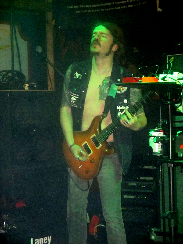 Battezzano la serata quegli acidissimi milanesi dei Satori Junk, ennesimi figli dei fumi densi e spregiducati degli Electric Wizard e degli Sleep, e che dal vivo si dimostrano ancora una volta concreti come pietre lanciate nel mucchio a tutta velocità. Le visioni vocali e le linee sonore cariche di effetto di Luke provocano un’evocatività quasi magistrale, che attrae e convince; fa cantare la sua tastiera ricordando i fantastici anni ’70 con onore e dedizione. I suoi compagni non sono di certo da meno: la sezione ritmica è martellante, con Nachos alla batteria in particolare che fa affiorare i battiti dell’oltretomba, ed altrettanto perentoria è stata la prestazione di Cristian alla chitarra, che dimostra sempre come si possa essere eccitati a dismisura nel suonare il proprio genere preferito. Una mezz’ora dove si è sentito soprattutto il materiale già presente nel disco di debutto, dove si è inserita anche nuova musica che aspetta solo di essere pubblicata su disco, per la gioia degli sbirrazzati fans del doom.