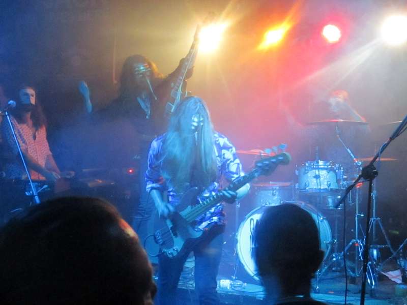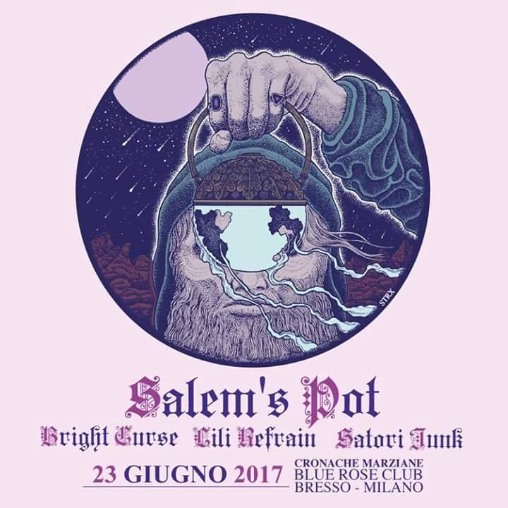 Lo stesso discorso si può fare per la musica dei Salem’s Pot. Ascoltando i loro album, in particolare proprio l’ultimo ‘Pronounce This!’, si nota una band che attua un sound dalla base dura, ma alla quale si appoggia una melodia particolarmente sinuosa ed elegante, che si rende piuttosto accattivante anche a chi non è particolarmente avvezzo a suoni marcatamente monolitici. Dopo un’attesa a tratti snervante dovuta al completo montaggio della strumentazione della band svedese, con annesso articolato line-check a cui si accompagnano facce piuttosto contrariate dei presenti, in orario tardo li ritroviamo infine mascherati come nella migliore Venezia di qualche secolo fa, e iniziano a bombardarci di sano e vero stoner doom. Un sound portentoso, ficcante, dritto all’obiettivo, che è quello si sballottarci a destra e a manca con la testa e con il corpo, e i Satori Junk appostati in prima fila lo hanno dimostrato appieno. I Salem’s Pot hanno messo in mostra una performance di grande fattura, molto positiva e potente, con lunghi tratti in cui la ritmica doom è stata al limite dell’ipnotico, per la sua capcità di fare breccia velocemente nei corpi dei presenti. Le bordate sono state tante e tutte di gran livello, sia quelle fatte scaturire dall’ensemble di chitarre e basso-batteria, incazzose come non mai, sia quando la tastiera prendeva il sopravvento e ci mandava in orbita con un biglietto sola andata verso le più lontane galassie. Se dalla parte del pubblico il concerto è stato molto avvincente, dalla parte del palco si sono avvertiti in diverse circostanze dei momenti di sofferenza e di inquietudine soprattutto da parte del tastierista e del chitarrista principale, dovuti ad una marcata deficienza delle spie sul palco che ha reso particolarmente ostica la comunicazione tra i musicisti, e quindi di interpretare i brani al meglio. Ma, come descritto anche durante la performance dei Bright Curse, anche in questo caso siamo di fronte a musicisti parecchio preparati, che sanno sopperire a queste mancanze, facendo al contempo divertire il pubblico. Con loro si chiude una serata altamente positiva, in cui c’è stato un sano divertimento sia del pubblico presente, che dei musicisti che ci hanno accompagnato. Inoltre, è da rimarcare che tutti i musicisti si sono supportati a vicenda, e questa è la mossa sostanziale e fondante per poter far accrescere maggiormente lo sviluppo della scena underground, non solo di questi generi. La reciprocità, il sostegno, il supporto, il rispetto: questi sono i termini che in misura maggiore si sono concretizzati nella serata del Blue Rose. Sta sia a noi avventori, che ai musicisti ed agli addetti ali lavori cercare di coltivarli, di curarli e di svilupparli nella maniera migliore.