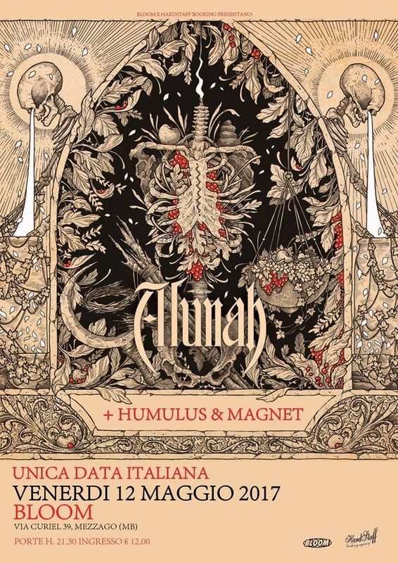 In collaborazione con Bloom e Hardstaff Booking Agency, è stata annunciata la data italiana del tour europeo della stoner-doom band britannica degli ALUNAH. La band capitanata dalla caratteristica voce e presenza di Sophie Day, approderà il prossimo 12 maggio sul palco del Bloom di Mezzago (MB) per presentare il nuovo album 'Solennial', in uscita il 17 marzo per Svart Records. Ad accompagnarli sul palco del Bloom due band italiane di tutto rispetto che fanno delle sonorità stoner e hard-rock vintage il loro punto cardine: ci saranno i lombardi HUMULUS, anche loro prossimi di nuovo disco quale sarà 'Reverently Heading Into Nowhere', ed i toscani MAGNET capitanati dal chitarrista degli PSYCHEDELIC WITCHCRAFT Riccardo Giuffrè e freschi di debutto discografico con l'ottimo 'Feel Your Fire', uscito per Soulseller Records. Di seguito i dettagli dell'evento: