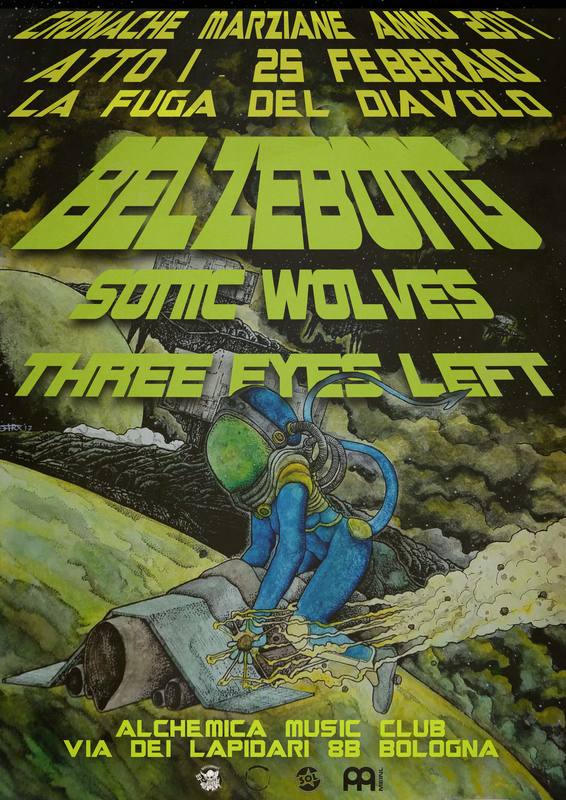 Per la prima volta a Bologna, sabato 25 febbraio 2017, la band doom metal polacca dei BELZEBONG (http://www.facebook.com/belzebong420) sarà ospite per la sua unica data italiana all'Alchemica Music Club. Accompagnata dalle formazioni italiane di SONIC WOLVES (stoner doom, con Vita membro degli UFOMAMMUT, Kayt ex membro dei PENTAGRAM - http://www.facebook.com/SonicWolves) e THREE EYES LEFT (doom sludge - http://www.facebook.com/3eyesleft), la band apre il ciclo di Cronache Marziane, tre eventi heavy-psych promossi da MartianArt - già promoter all'Alchemica del concerto-evento degli UFOMAMMUT a dicembre 2015.