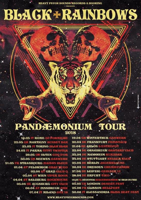 La stoner-fuzz band italiana BLACK RAINBOWS ha annunciato di intraprendere il tour europeo che supporterà il nuovo album 'Pandaemonium', in uscita il prossimo 6 aprile per Heavy Psych Sounds Records. La band capitanata da Gabriele Fiori, nonché fondatore della label, sarà in giro tra marzo e giugno toccando vari paesi, con serate anche qui in Italia. Di seguito le date del tour con la segnalazione delle date italiane: