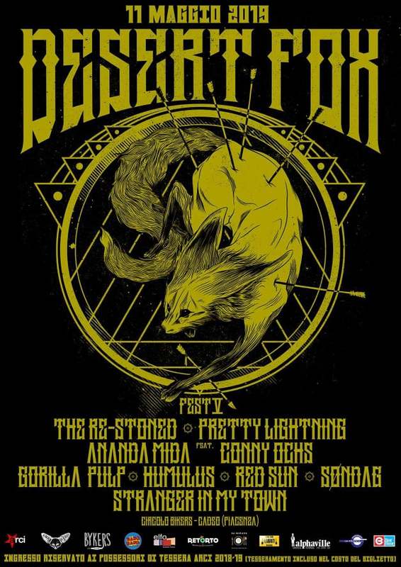 Desert Fox Records è lieta di presentare la quinta edizione del DESERT FOX FEST. Come nelle precedenti edizioni, il festival si svolgerà presso il Circolo Bikers di Cadeo (PC), nella serata di sabato 11 maggio. Le band che prenderanno parte a questo festival, caratterizzato dalle sonorità stoner, psichedeliche e alternative rock italiane ed internazionali, saranno le seguenti: