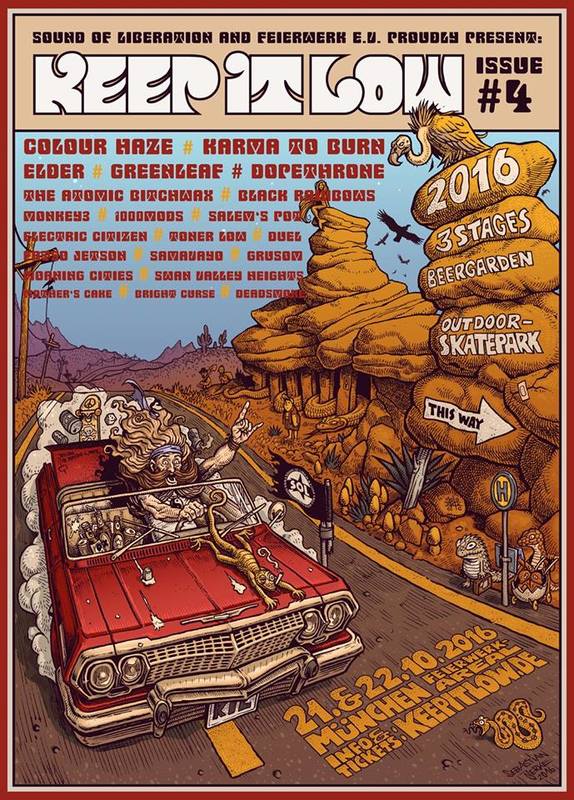 Dopo l'esperienza dell'Up In Smoke in Svizzera, un altro appuntamento per gli amanti dello stoner e del doom è quello del Keep It Low, di scena come ogni anno al Feierwerk-Areal di Monaco di Baviera, in Germania. La kermesse si svolgerà nelle giornate di venerdì 21 e sabato 22 ottobre. Di seguito la line-up completa delle band e il flyer ufficiale: