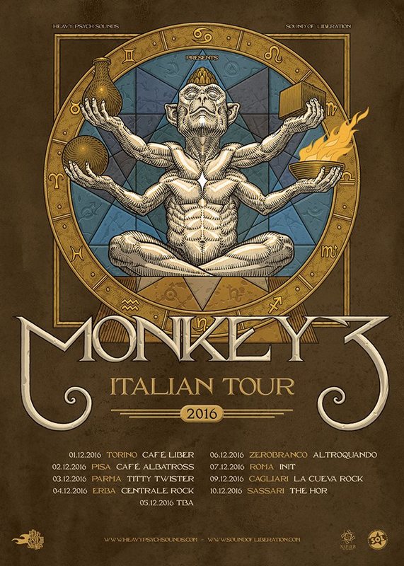 L'agenzia italiana Heavy Psych Sounds Records&Booking, in collaborazione con Sound Of Liberation UG, presenta le date italiane della psych rock band svizzera MONKEY3. In queste date interpreteranno i brani del nuovo album 'Astra Symmetry', uscito lo scorso 2 settembre per Napalm Records. Queste le date della band in Italia: