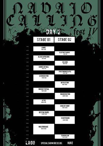 Attic, Bestial Raids, Black Capricorn, Botulistum, Electric Taurus, Epitaph, Evil Invaders, Excruciation, Frostmoon Eclipse, Game Over, Incarceration, Kult, Lambs, Mefitic, Messa, Selvans, Shores Of Null, Surge Assault, Svartidaudi, TerrorSaw, Voids of Vomit, Whiskey Ritual e Wolfbrigade.