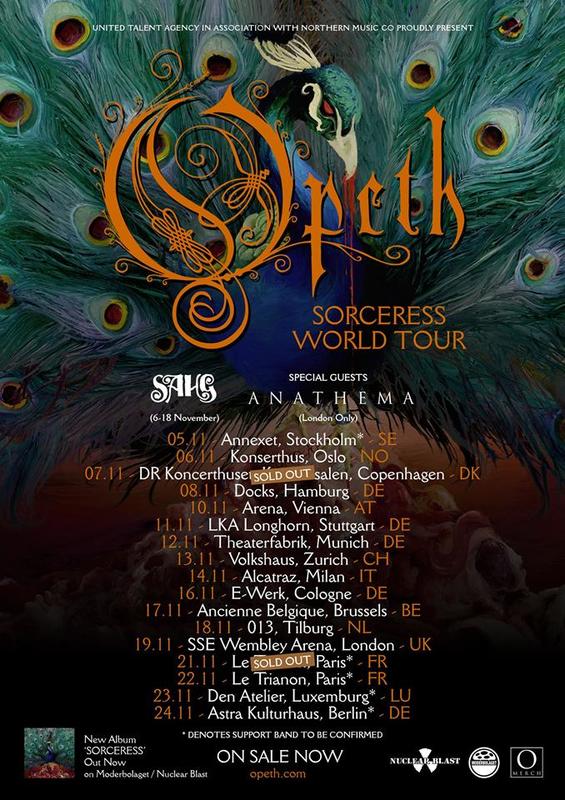 La progressive death metal band svedese OPETH ha annunciato quale sarà la band di supporto che li accompagnerà per buona parte della leg europea a seguito della pubblicazione del nuovo album 'Sorceress'. Si tratta della stoner-doom metal band norvegese SAHG, anche loro in tour per promuovere il nuovo album da titolo 'Memento Mori', uscito lo scorso 23 settembre per Indie Recordings. I SAHG supporteranno gli OPETH anche per la data del prossimo 14 novembre all'Alcatraz di Milano. Si ricorda infine che per la data del 18 novembre alla SEE Wembley Arena di Londra la band svedese sarà supportata dagli ANATHEMA.