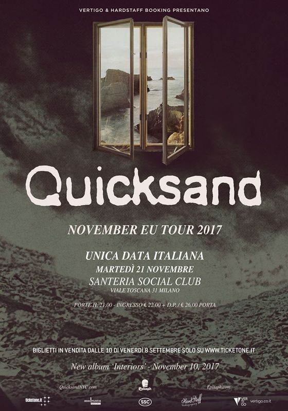 Dopo ben ventidue anni dalla pubblicazione di 'Manic Compression', torna una delle band più di culto del panorama post-hardcore americano, i QUICKSAND. La band di New York fondata dall'attuale chitarrista dei GORILLA BISCUITS Walter Schreifels e dalla breve ma intensissima vita, torna in studio e sui palchi dopo lo scioglimento avvenuto nel 1999 e la piccola reunion nel 2012 per una manciata di live, annunciando il nuovo album in uscita il prossimo 10 novembre per l'etichetta Epitaph Records ed intitolato 'Interiors', di cui è già stato estratto il singolo "Illuminant". Per il tour europeo è prevista una data italiana il prossimo 21 novembre al Santeria Social Club di Milano. Di seguito i dettagli della data italiana: