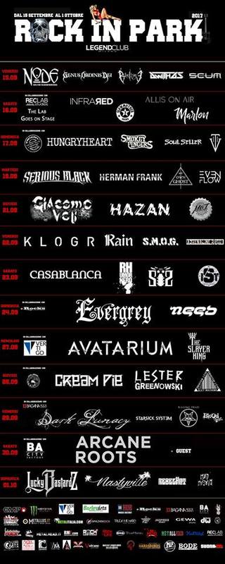 E' stata annunciata la nuova edizione del ROCK IN PARK, la kermesse musicale che si svolge, come di consueto, nella cornice del Legend Club di Milano. Come nelle edizioni precedenti, il programma di settembre è la versione "light" dell'happening che ha il corpo principale nell'edizione primaverile, ma che dalle band che sono state annunciate assume comunque uguale importanza e motivi di interesse. Di seguito il programma delle varie serate e le condizioni di ingresso: