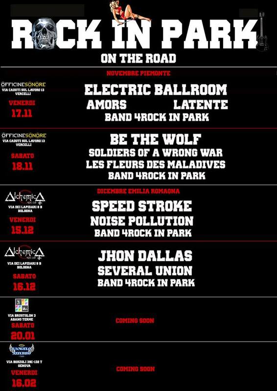 Questa volta il Rock In Park, la kermesse rock nata in collaborazione con il Legend Club di Milano, dopo il successo delle edizioni passate uscirà dai confini milanesi, per diventare itinerante e toccare varie città d'Italia. Si inizia da subito, a novembre, per una serie di date già annunciate, a cui ne seguiranno altre di prossima pubblicazione. Di seguito le serate già fissate con le band che parteciperanno: