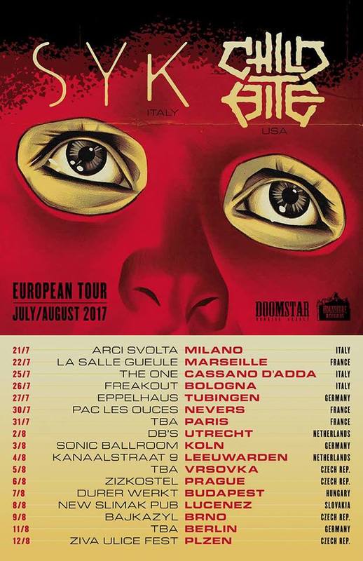 L'avant-garde metal band italiana SYK si appresterà a compiere nei prossimi giorni una serie di date in giro per l'Europa per promuovere l'ultimo disco della band dal titolo 'I-Optikon', prodotto dalla Housecore Records di Phil Anselmo. Assieme ai SYK, a supportare il tour ci saranno i post-punkers statunitensi CHILD BITE. Ci saranno anche delle date in Italia all'interno del tour; tutte le date sono elencate di seguito: