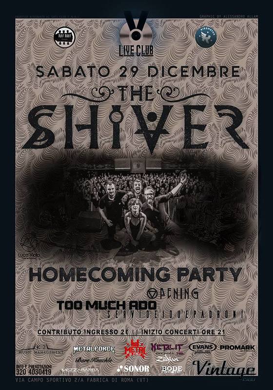 Di ritorno dal tour europeo assieme ai finlandesi THE RASMUS (raccontato attraverso un tour diary pubblicato sulla nostra webzine, a cura della cantante Federica 'Faith' Sciamanna), l'alternative rock band italiana THE SHIVER ha deciso di organizzare un live nelle loro terre di origine, la provincia di Viterbo. La serata sarà quella di sabato 29 dicembre, e la location sarà il Vintage Live Club di Fabrica di Roma (VT). Assieme ai THE SHIVER, ci saranno altre due band di casa, come i TOO MUCH ADO e i SERVI DEI DUE PADRONI. La serata sarà organizzata in collaborazione con K2 Music Management e Metal In Italy, e il contributo artistico d'ingresso sarà di 2€.