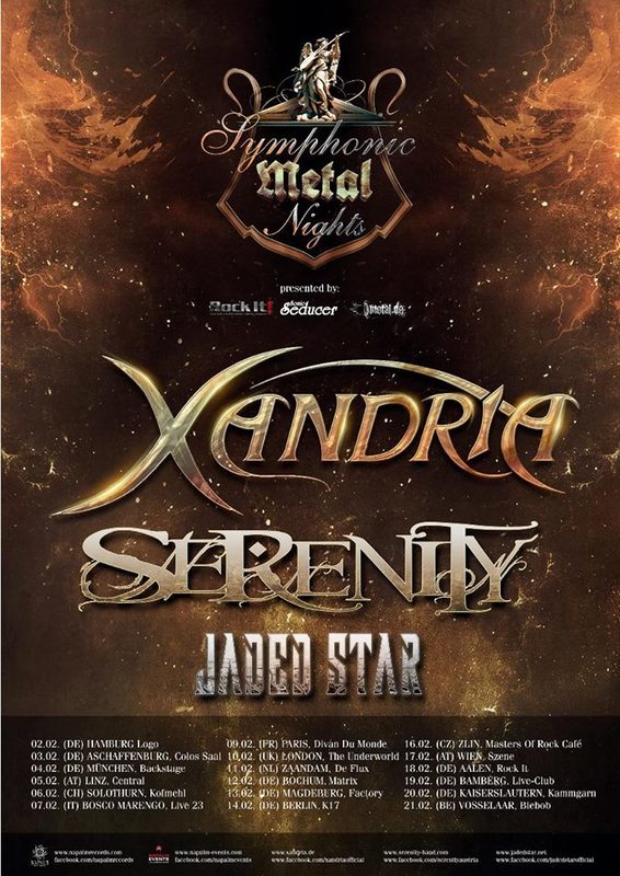 La symphonic metal band tedesca XANDRIA ha annunciato che intraprenderà un tour europeo previsto per febbraio 2016, in compagnia dei SERENITY e dei JADED STAR. Tra le date annunciate, è prevista anche una data in Italia, precisamente il prossimo 7 febbraio al Live23 di Bosco Marengo, in provincia di Alessandria. Eccezion fatta per la data italiana, i biglietti sono disponibili sulla webshop degli XANDRIA, al seguente link: