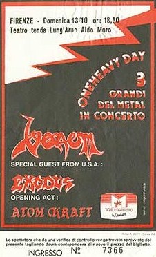 Paul Balloff sarà anche stato uno che saliva sul palco ubriaco e si scordava le parole dei pezzi, ma se lo fece quella volta noi non ce ne accorgemmo. Quando parlava col pubblico capivamo poco più del titolo dei brani, ma il tono della sua voce (una rabbia e un’aggressività enfatiche, quasi teatrali e al tempo stesso completamente genuine) colmava ampiamente questa lacuna nella comunicazione. Gli Exodus dal vivo erano di un’intensità intraducibile in parole. Cosa avevano all'epoca? Per usare le parole di Ron Quintana "The speed, the screaming, the yelling, the guitarwork". Gli Exodus si presero tutto. Quando arrivarono i Venom, il pubblico era stato prosciugato di buona parte delle sue energie. Chissà cosa si aspettavano Cronos e soci, con le loro fontane pirotecniche, con la loro nebbia arancione e con i ventilatori nascosti che muovevano loro i capelli. Forse si resero conto di essere superati, che il vento era radicalmente cambiato, forse no.